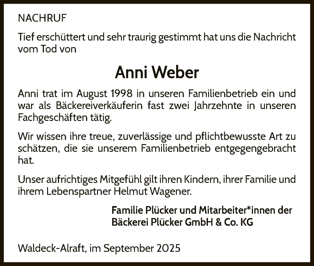 Hier finden Sie alle Traueranzeigen aus der Zeitung, die bisher für Anni Weber erschienen sind. Weitere Traueranzeigen, die in der Zeitung erscheinen, werden hier ebenfalls aufgelistet