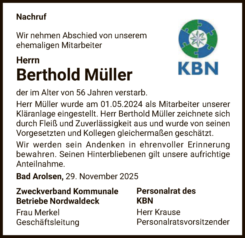 Hier finden Sie alle Traueranzeigen aus der Zeitung, die bisher für Berthold Müller erschienen sind. Weitere Traueranzeigen, die in der Zeitung erscheinen, werden hier ebenfalls aufgelistet