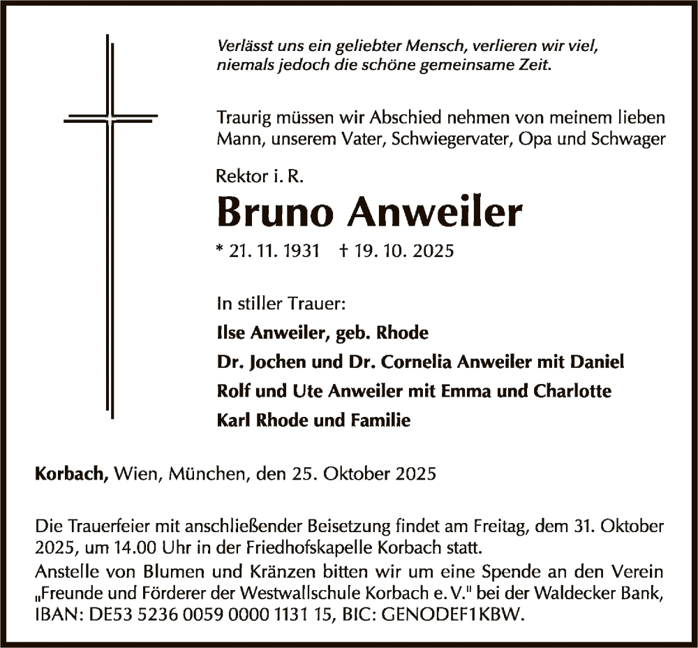 Hier finden Sie alle Traueranzeigen aus der Zeitung, die bisher für Bruno Anweiler erschienen sind. Weitere Traueranzeigen, die in der Zeitung erscheinen, werden hier ebenfalls aufgelistet
