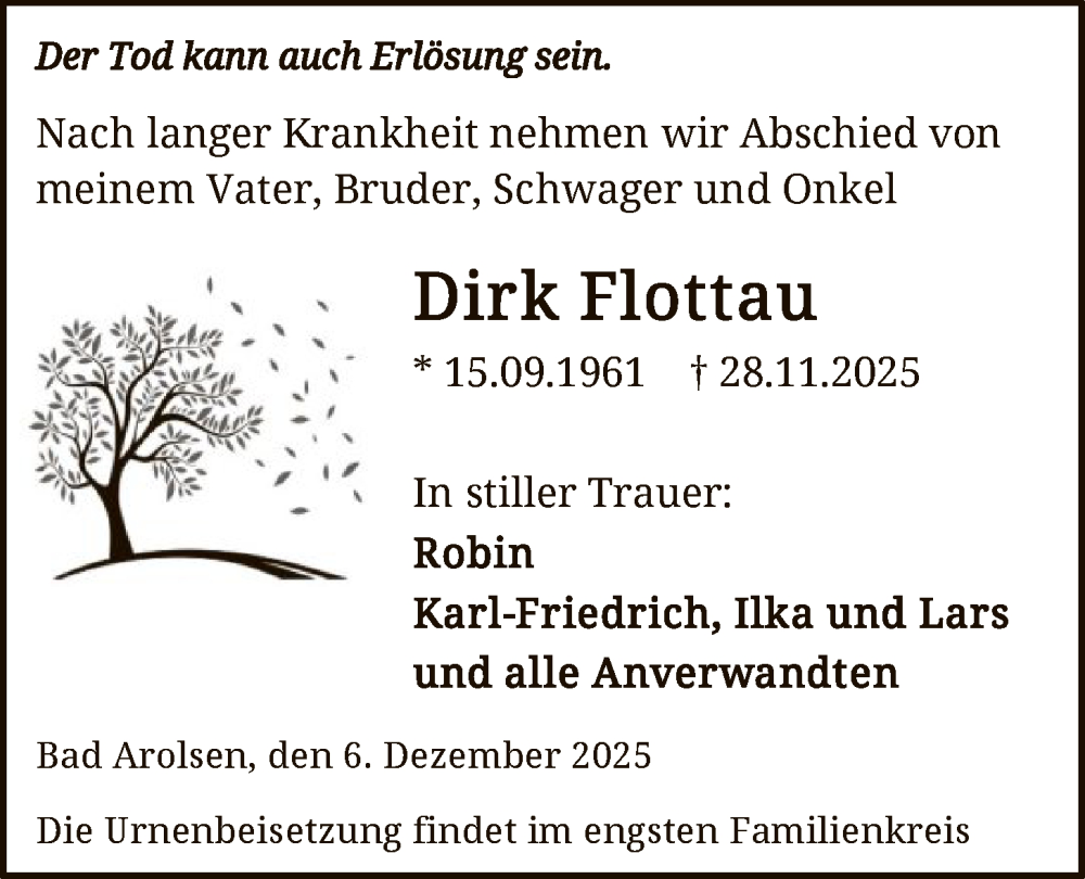 Hier finden Sie alle Traueranzeigen aus der Zeitung, die bisher für Dirk Flottau erschienen sind. Weitere Traueranzeigen, die in der Zeitung erscheinen, werden hier ebenfalls aufgelistet