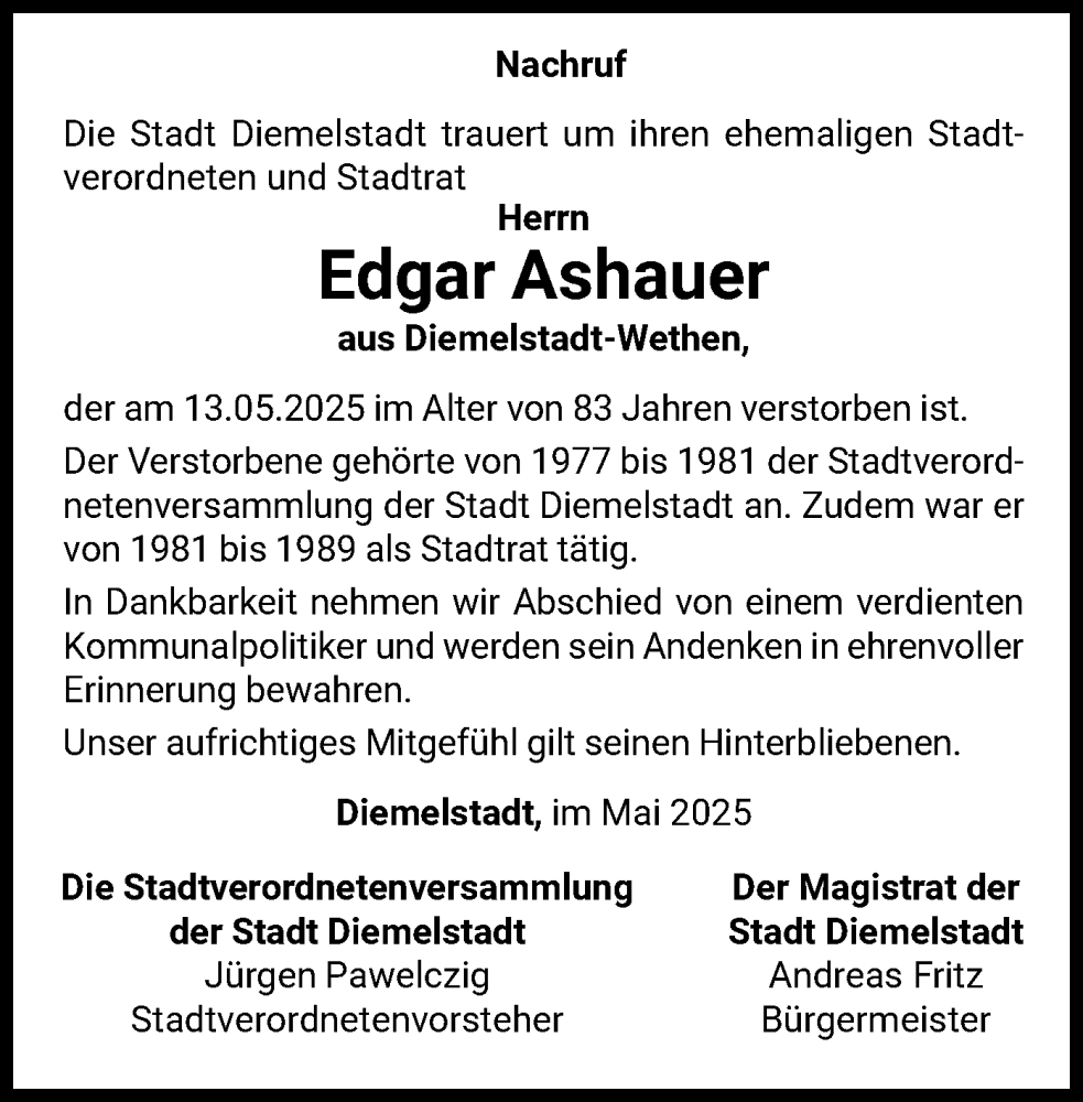 Hier finden Sie alle Traueranzeigen aus der Zeitung, die bisher für Edgar Ashauer erschienen sind. Weitere Traueranzeigen, die in der Zeitung erscheinen, werden hier ebenfalls aufgelistet