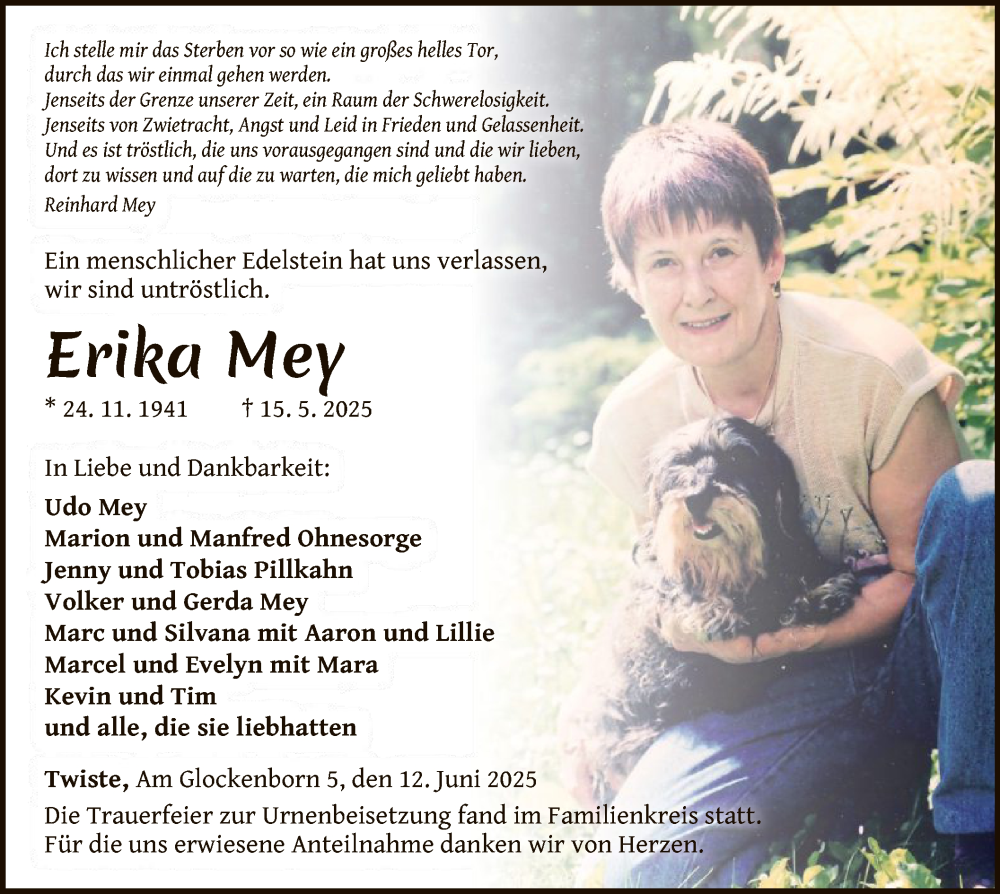 Hier finden Sie alle Traueranzeigen aus der Zeitung, die bisher für Erika Mey erschienen sind. Weitere Traueranzeigen, die in der Zeitung erscheinen, werden hier ebenfalls aufgelistet