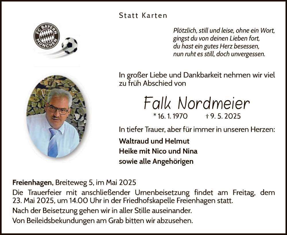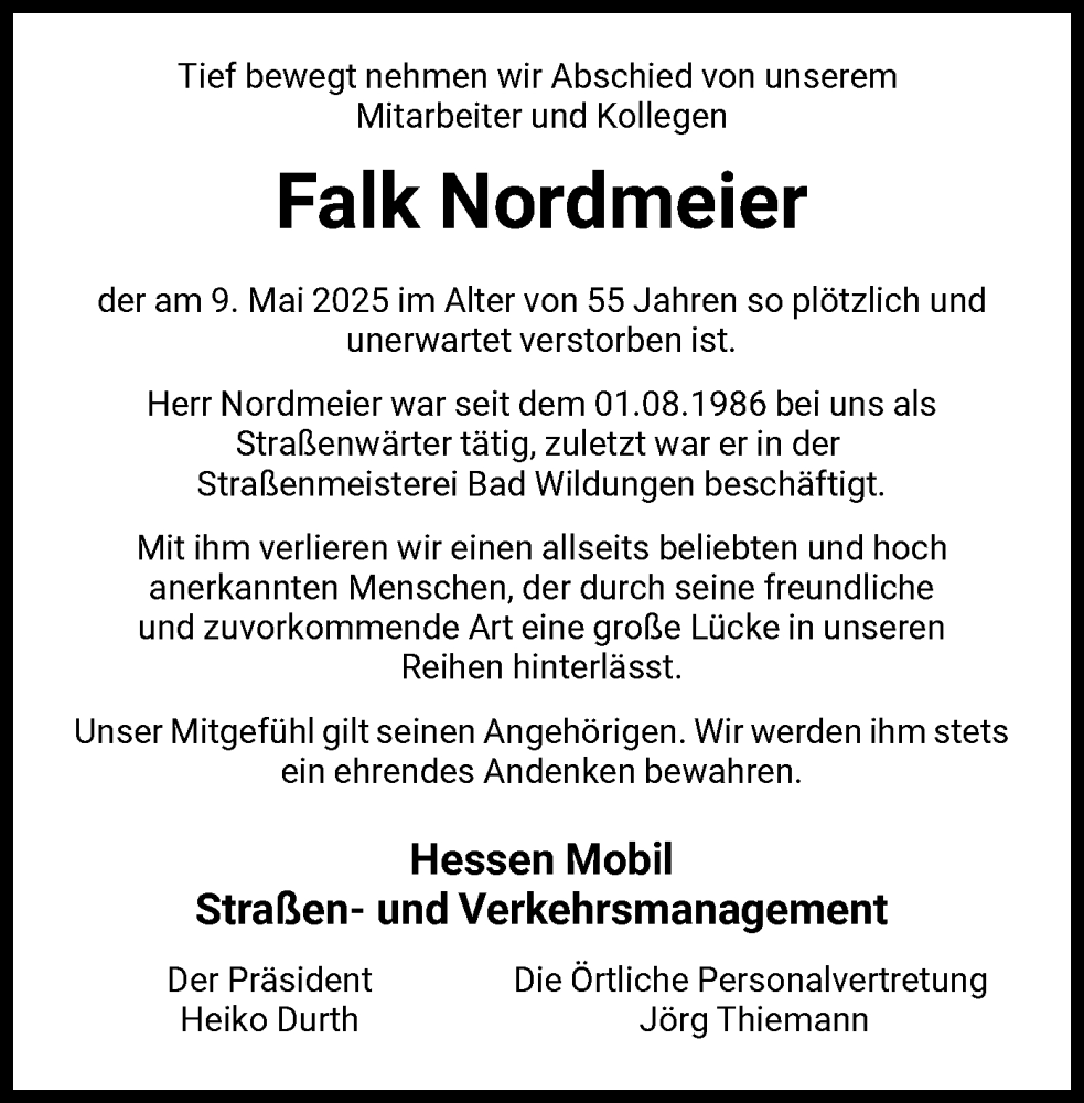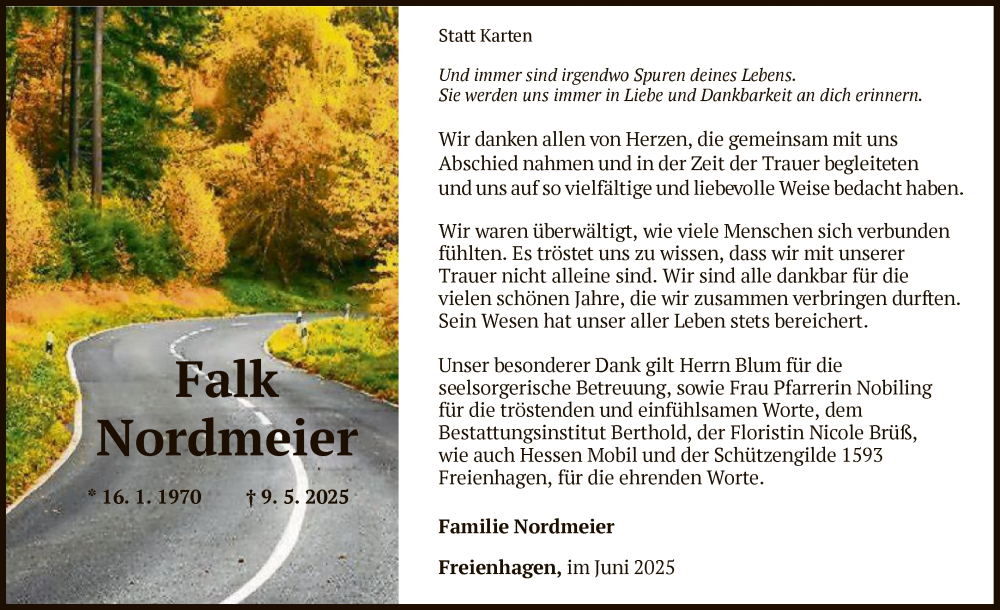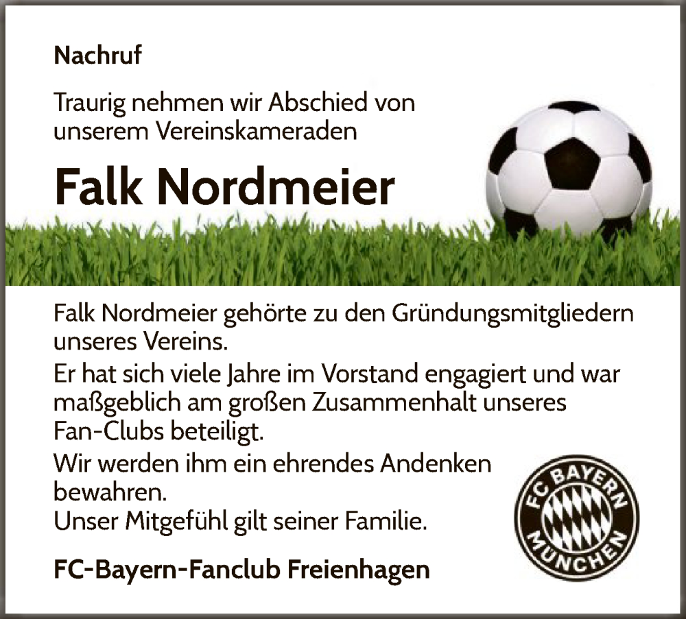 Hier finden Sie alle Traueranzeigen aus der Zeitung, die bisher für Falk Nordmeier erschienen sind. Weitere Traueranzeigen, die in der Zeitung erscheinen, werden hier ebenfalls aufgelistet