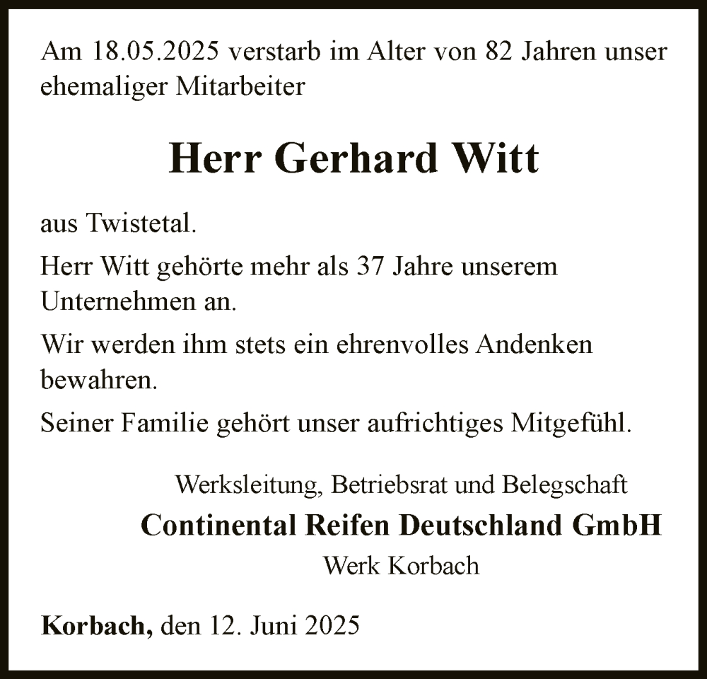 Hier finden Sie alle Traueranzeigen aus der Zeitung, die bisher für Gerhard Witt erschienen sind. Weitere Traueranzeigen, die in der Zeitung erscheinen, werden hier ebenfalls aufgelistet