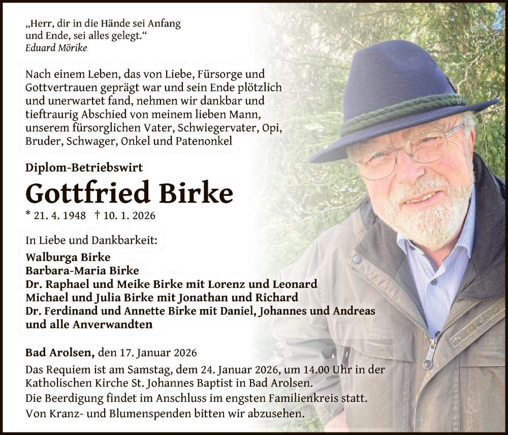 Hier finden Sie alle Traueranzeigen aus der Zeitung, die bisher für Gottfried Birke erschienen sind. Weitere Traueranzeigen, die in der Zeitung erscheinen, werden hier ebenfalls aufgelistet