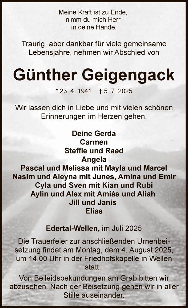 Hier finden Sie alle Traueranzeigen aus der Zeitung, die bisher für Günther Geigengack erschienen sind. Weitere Traueranzeigen, die in der Zeitung erscheinen, werden hier ebenfalls aufgelistet