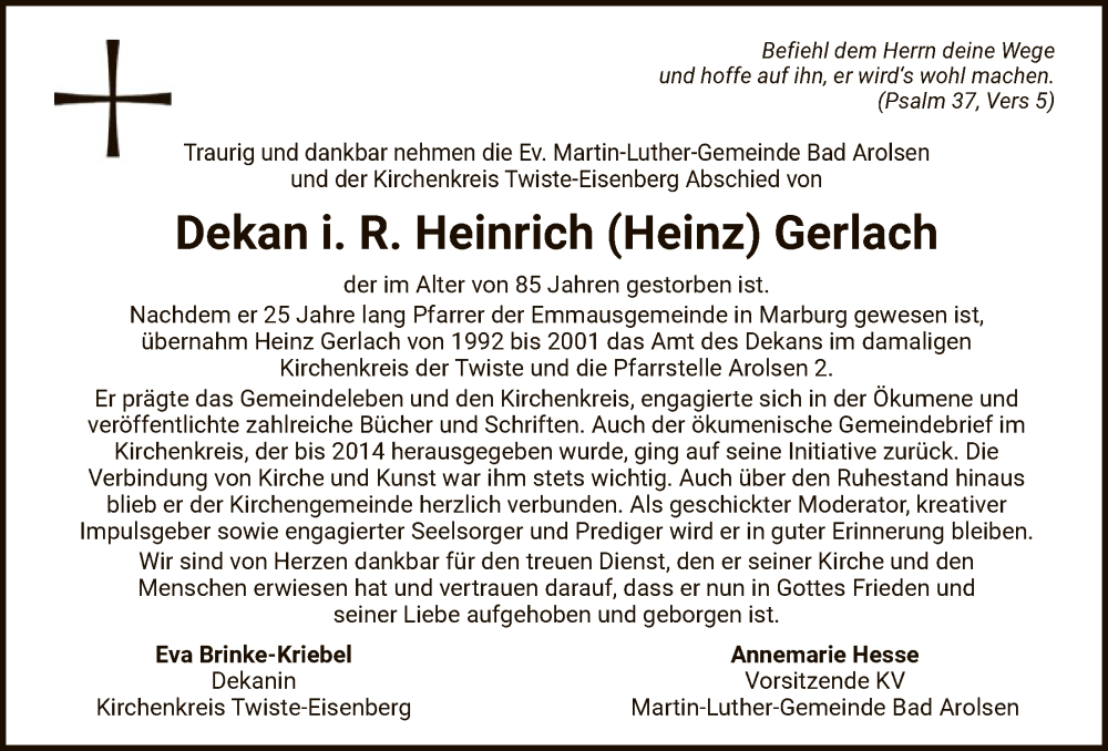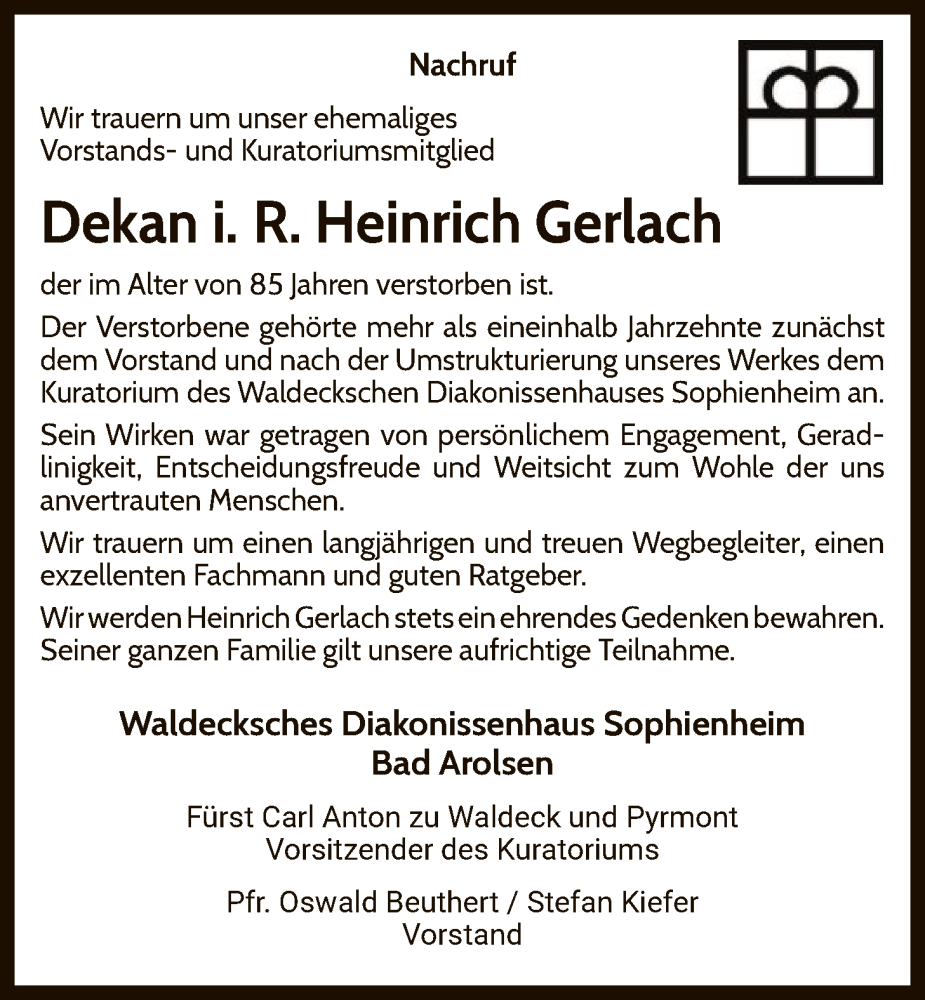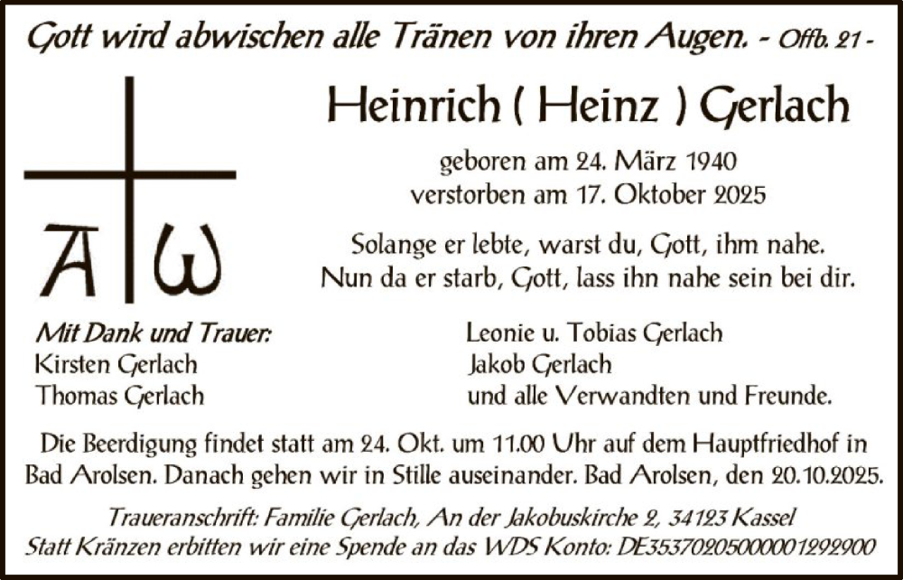 Hier finden Sie alle Traueranzeigen aus der Zeitung, die bisher für Heinrich Gerlach erschienen sind. Weitere Traueranzeigen, die in der Zeitung erscheinen, werden hier ebenfalls aufgelistet