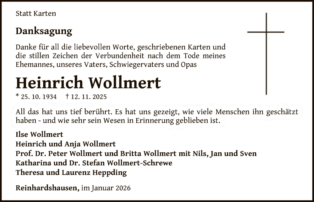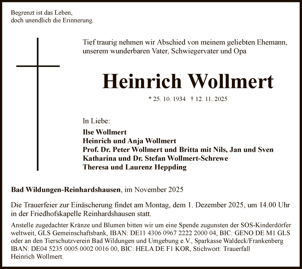 Hier finden Sie alle Traueranzeigen aus der Zeitung, die bisher für Heinrich Wollmert erschienen sind. Weitere Traueranzeigen, die in der Zeitung erscheinen, werden hier ebenfalls aufgelistet