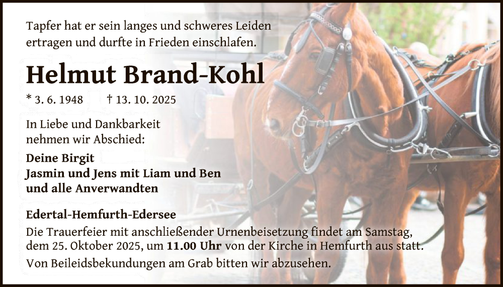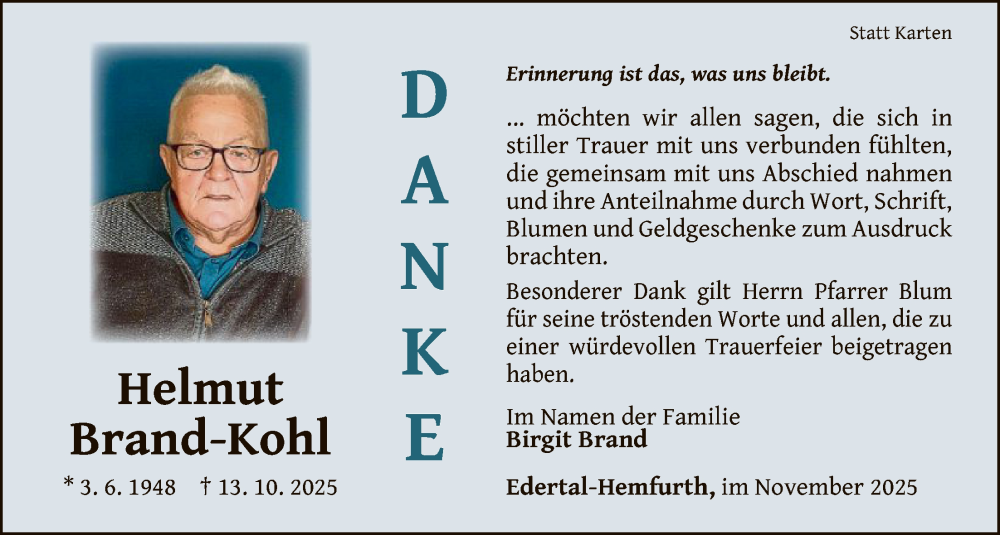Hier finden Sie alle Traueranzeigen aus der Zeitung, die bisher für Helmut Brand-Kohl erschienen sind. Weitere Traueranzeigen, die in der Zeitung erscheinen, werden hier ebenfalls aufgelistet