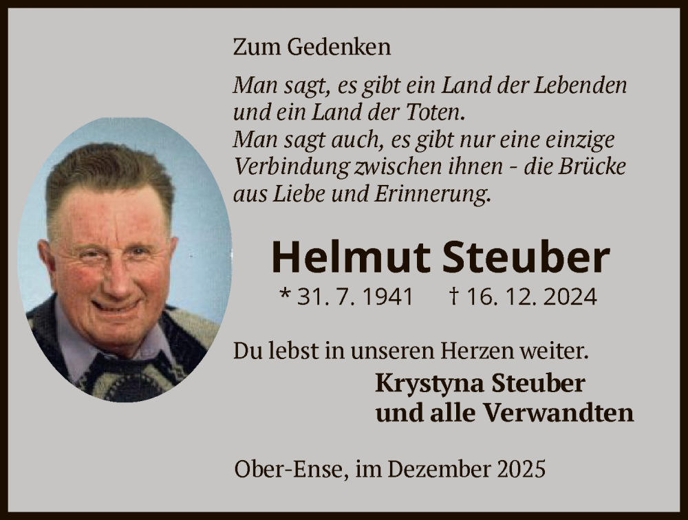 Hier finden Sie alle Traueranzeigen aus der Zeitung, die bisher für Helmut Steuber erschienen sind. Weitere Traueranzeigen, die in der Zeitung erscheinen, werden hier ebenfalls aufgelistet