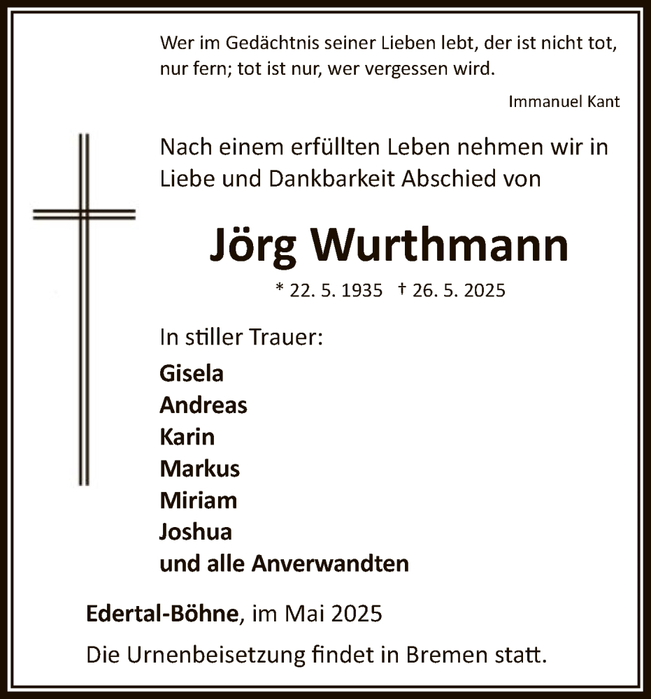 Hier finden Sie alle Traueranzeigen aus der Zeitung, die bisher für Jörg Wurthmann erschienen sind. Weitere Traueranzeigen, die in der Zeitung erscheinen, werden hier ebenfalls aufgelistet