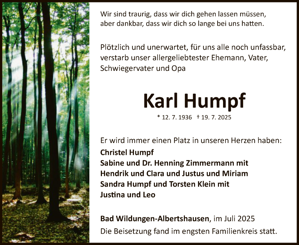 Hier finden Sie alle Traueranzeigen aus der Zeitung, die bisher für Karl Humpf erschienen sind. Weitere Traueranzeigen, die in der Zeitung erscheinen, werden hier ebenfalls aufgelistet