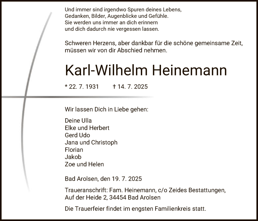 Hier finden Sie alle Traueranzeigen aus der Zeitung, die bisher für Karl-Wilhelm Heinemann erschienen sind. Weitere Traueranzeigen, die in der Zeitung erscheinen, werden hier ebenfalls aufgelistet