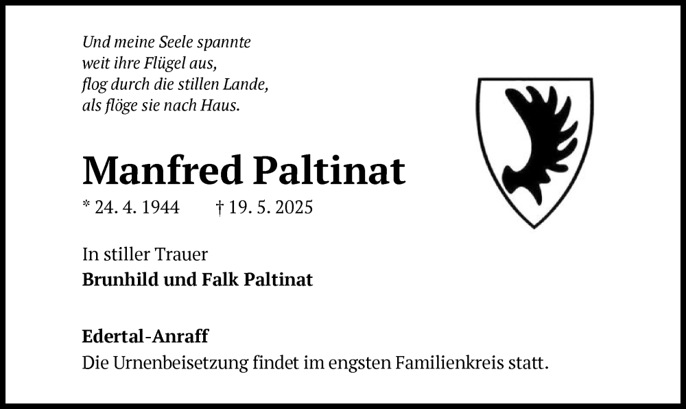 Hier finden Sie alle Traueranzeigen aus der Zeitung, die bisher für Manfred Paltinat erschienen sind. Weitere Traueranzeigen, die in der Zeitung erscheinen, werden hier ebenfalls aufgelistet