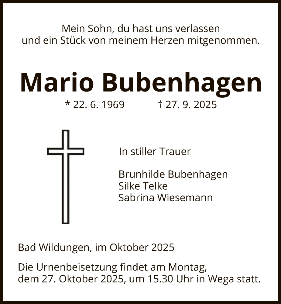 Hier finden Sie alle Traueranzeigen aus der Zeitung, die bisher für Mario Bubenhagen erschienen sind. Weitere Traueranzeigen, die in der Zeitung erscheinen, werden hier ebenfalls aufgelistet