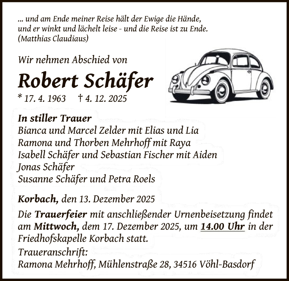 Hier finden Sie alle Traueranzeigen aus der Zeitung, die bisher für Robert Schäfer erschienen sind. Weitere Traueranzeigen, die in der Zeitung erscheinen, werden hier ebenfalls aufgelistet