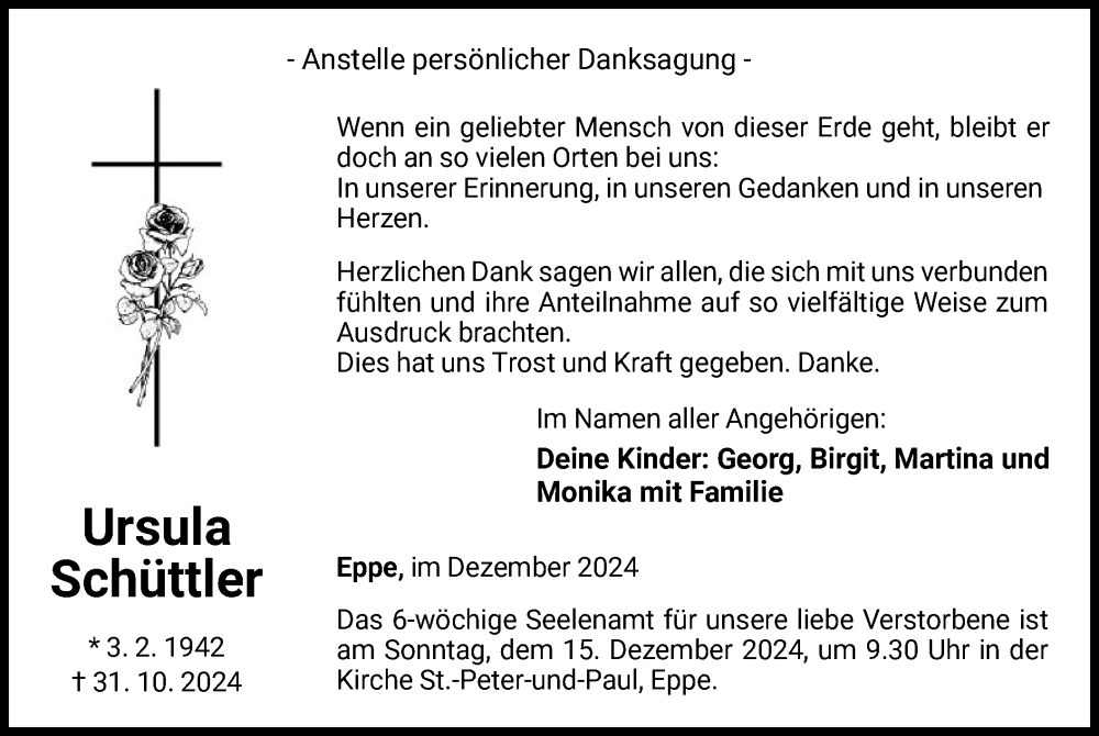 Hier finden Sie alle Traueranzeigen aus der Zeitung, die bisher für Ursula Schüttler erschienen sind. Weitere Traueranzeigen, die in der Zeitung erscheinen, werden hier ebenfalls aufgelistet