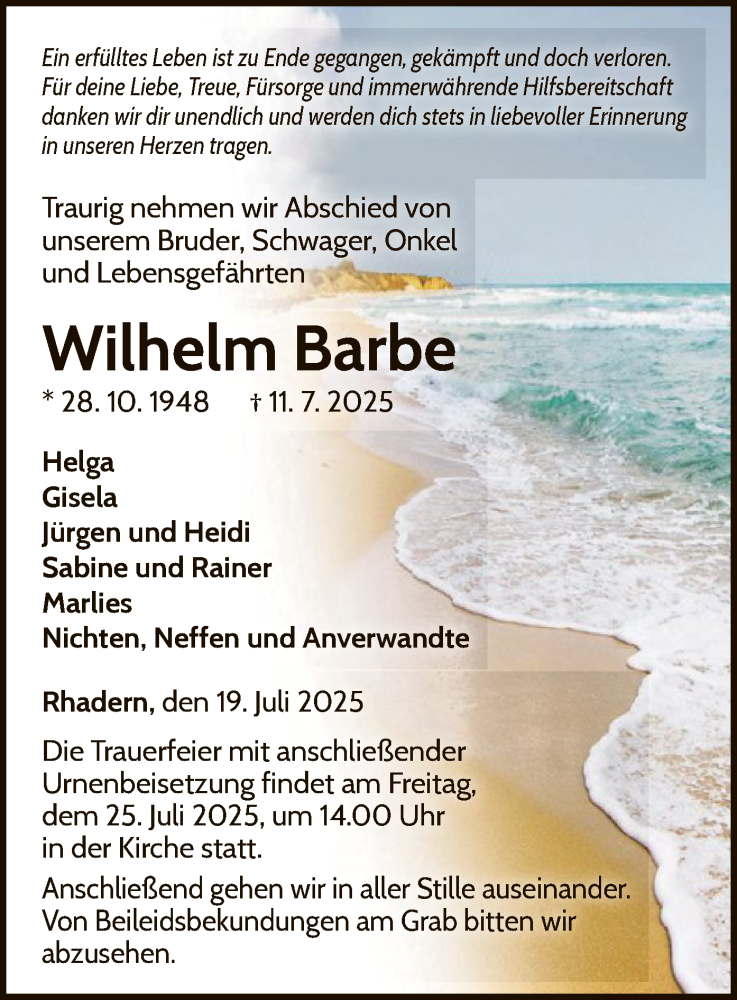 Hier finden Sie alle Traueranzeigen aus der Zeitung, die bisher für Wilhelm Barbe erschienen sind. Weitere Traueranzeigen, die in der Zeitung erscheinen, werden hier ebenfalls aufgelistet