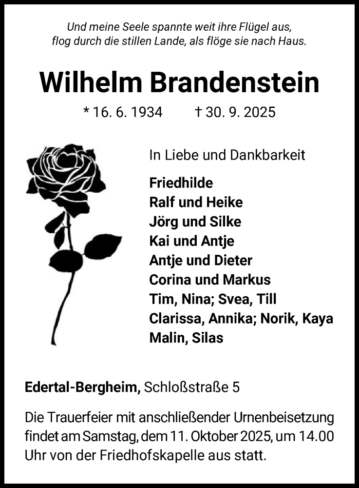 Hier finden Sie alle Traueranzeigen aus der Zeitung, die bisher für Wilhelm Brandenstein erschienen sind. Weitere Traueranzeigen, die in der Zeitung erscheinen, werden hier ebenfalls aufgelistet