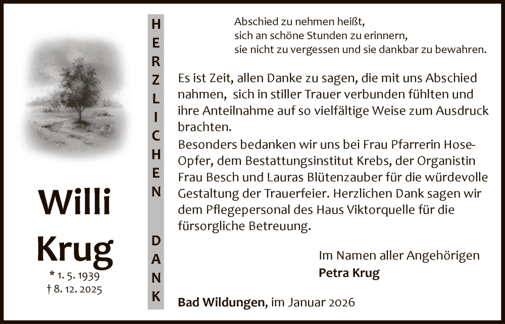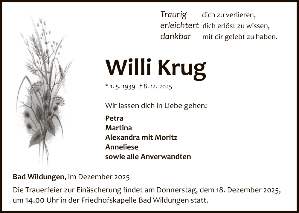 Hier finden Sie alle Traueranzeigen aus der Zeitung, die bisher für Willi Krug erschienen sind. Weitere Traueranzeigen, die in der Zeitung erscheinen, werden hier ebenfalls aufgelistet