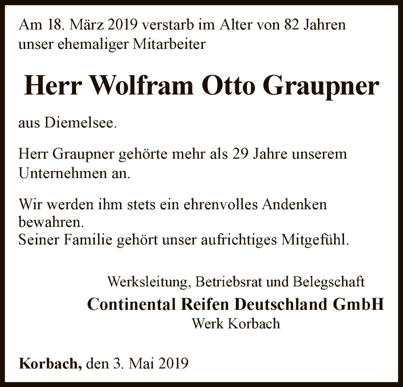 Hier finden Sie alle Traueranzeigen aus der Zeitung, die bisher für Wolfram Otto Graupner erschienen sind. Weitere Traueranzeigen, die in der Zeitung erscheinen, werden hier ebenfalls aufgelistet
